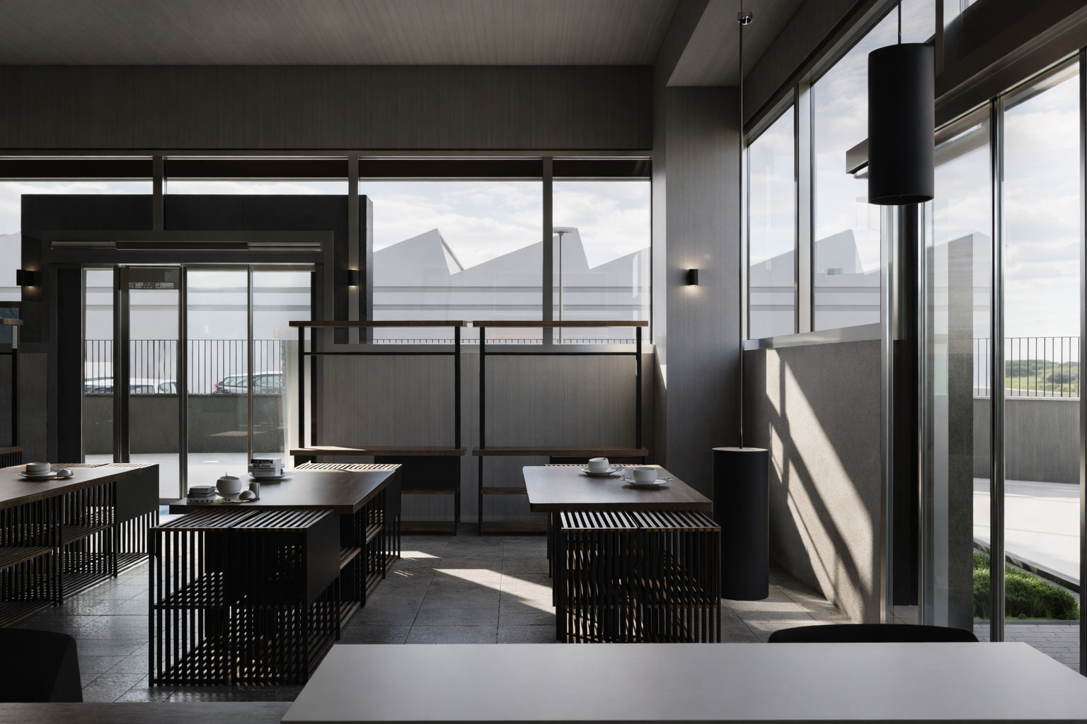 I due edifici sono collegati da un percorso interno al secondo livello che consente di separare in modo chiaro i flussi della clientela da quelli operativi e di servizio, garantendo funzionalità ed efficienza nella gestione delle attività.