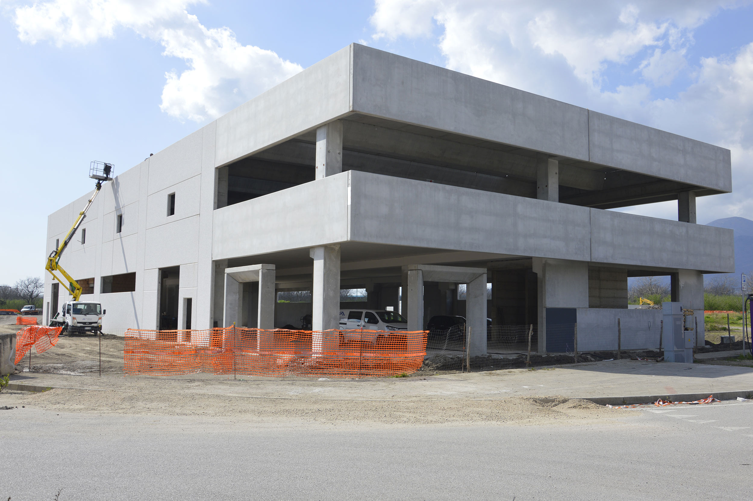 Il primo volume, sviluppato su due livelli e affacciato sulla viabilità principale, accoglie gli spazi dedicati alla rappresentanza aziendale, agli uffici direzionali e alle funzioni di front-office. Alle sue spalle si sviluppa il capannone destinato alle attività di deposito, movimentazione e distribuzione delle merci.