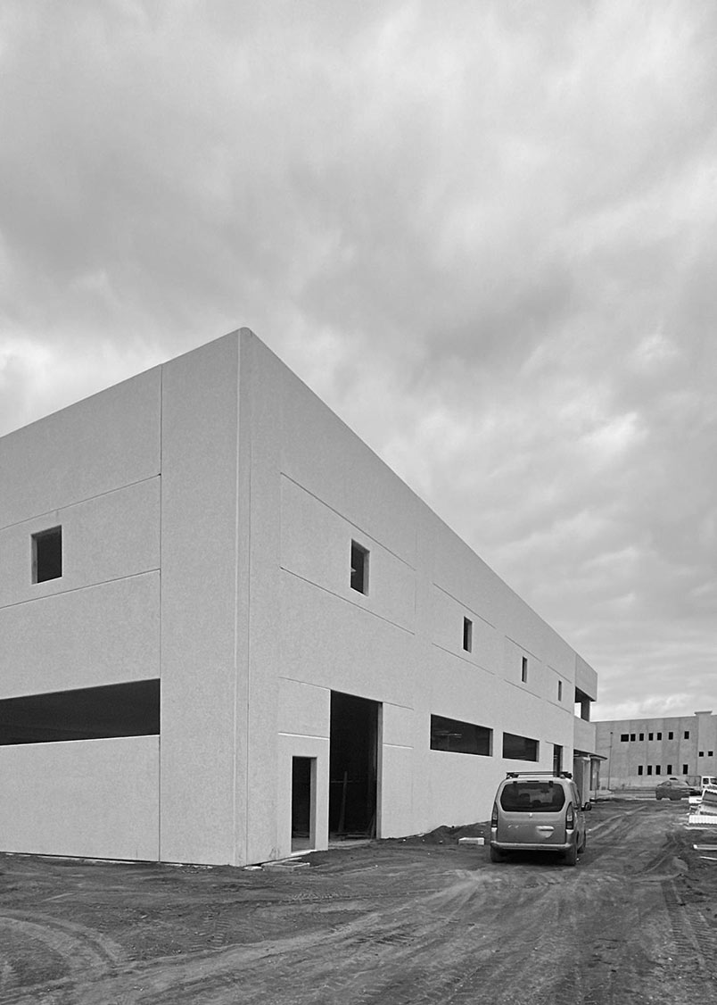 Progettazione architettonica integrata, coordinamento delle discipline tecniche e direzione lavori per la realizzazione di un complesso industriale composto da edificio direzionale e capannone logistico.